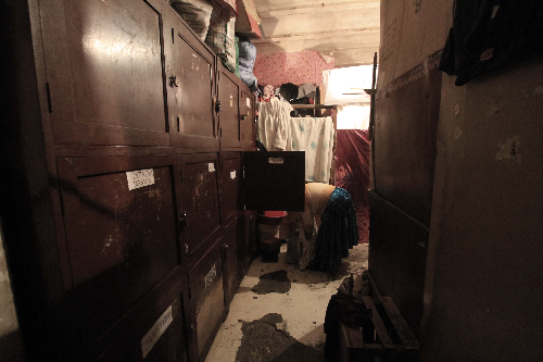 Antes de llegar a su toldo, pasamos por el patio donde hay una docena de duchas. En la puerta había una fila de más de 10 personas que esperaban bañarse, en una de las tres duchas que funcionan.
