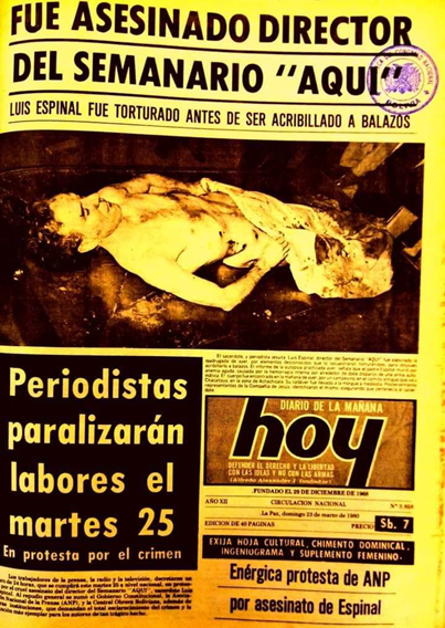La nota generó escándalo. René Carvajal –en su columna sindical “Televisión y Educación”, publicada en Presencia el 27 de mayo– sintetizó lo que pensaban los periodistas: “Preocupa que el Gerente de TVB enfile toda una artillería de insultos para censurar la actitud del periodista Espinal”. Recordó “que fue precisamente por ‘desleal’ que a Córdova lo expulsaron del Sindicato de la Prensa de La Paz, cuando trabajaba al lado del último canciller del Movimiento Nacionalista Revolucionario, en 1964”.